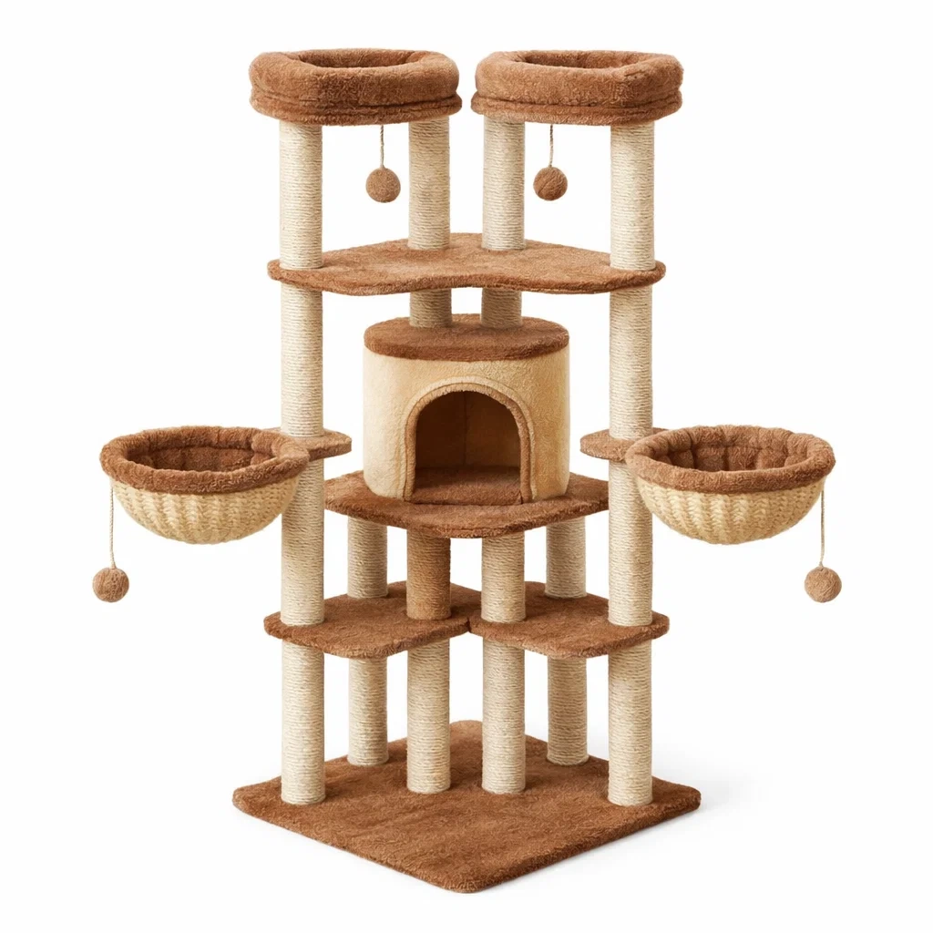 Arbre à chat en bois brun et crème
