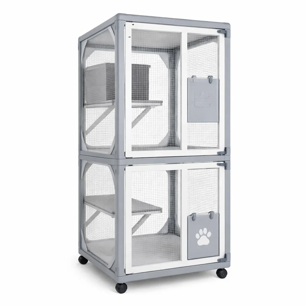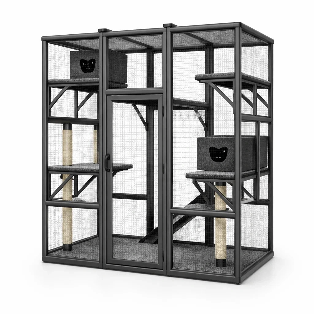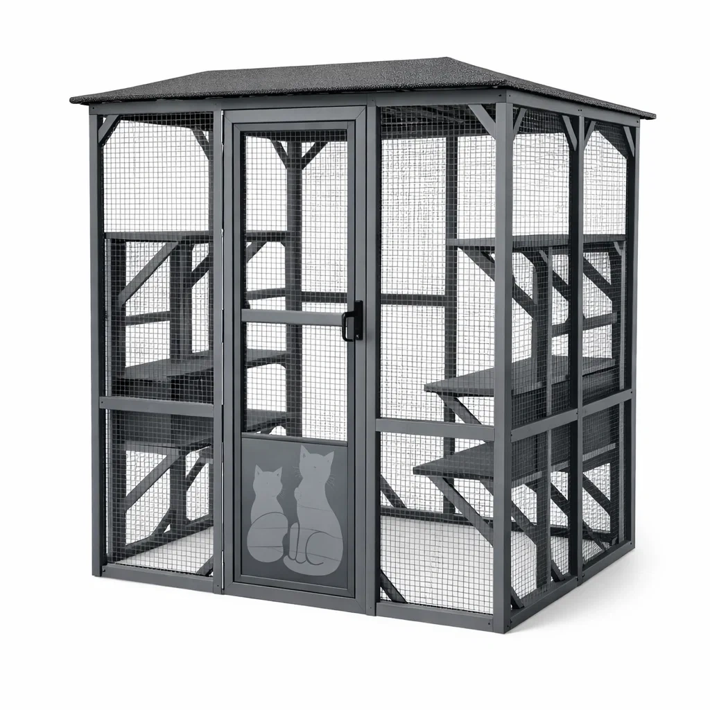 Enclos pour chat en métal gris avec portes