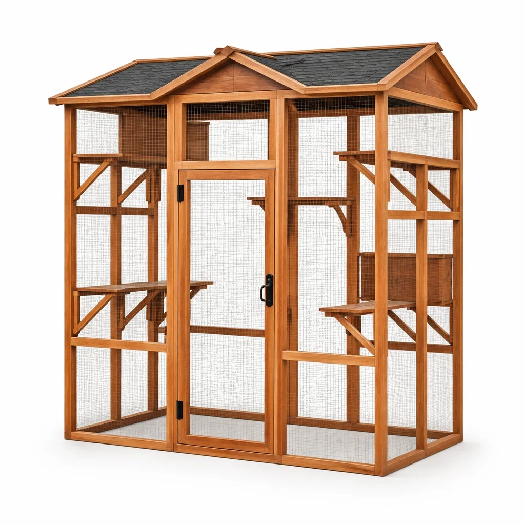 Enclos pour chat en bois et grillage métallique