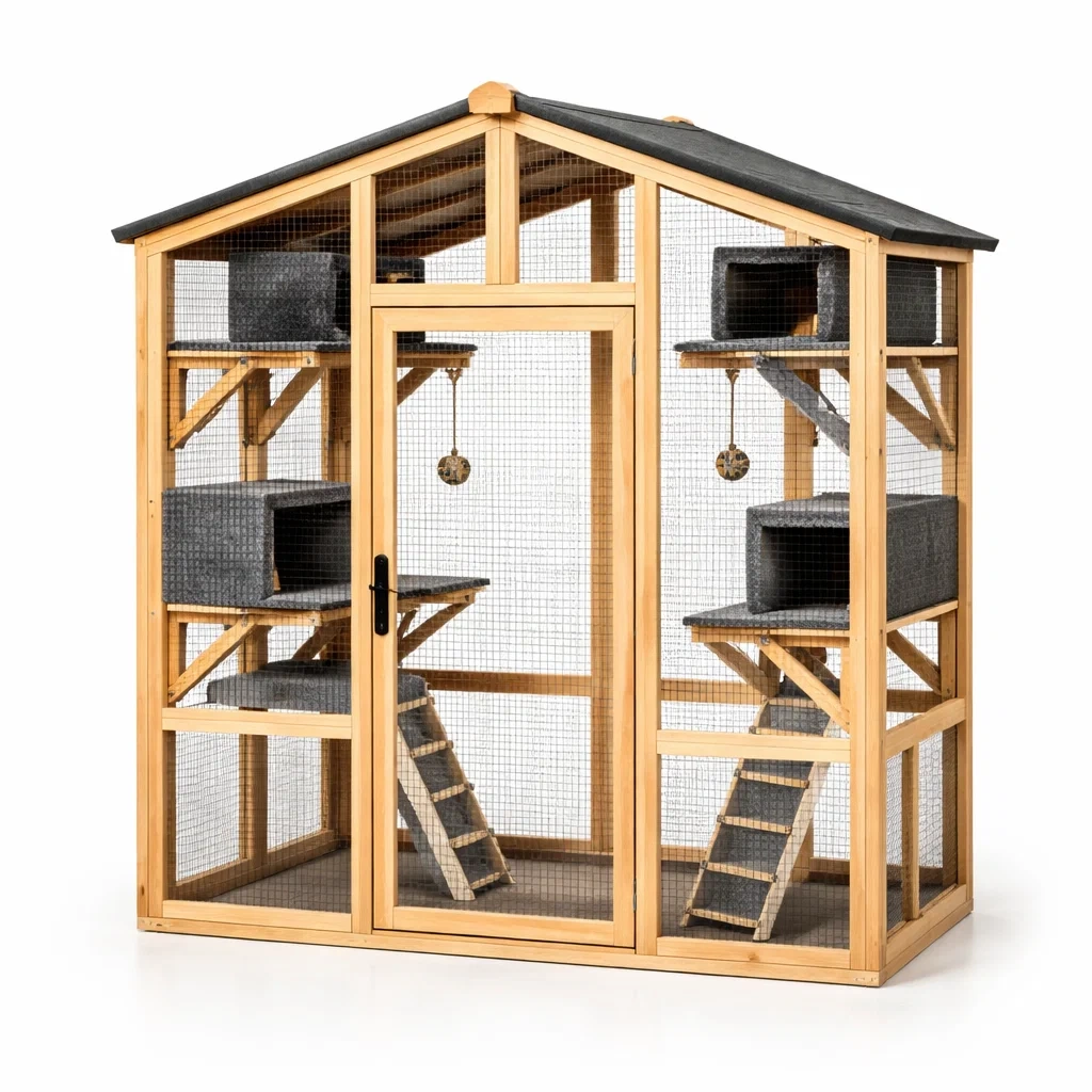 Enclos pour chat extérieur en bois