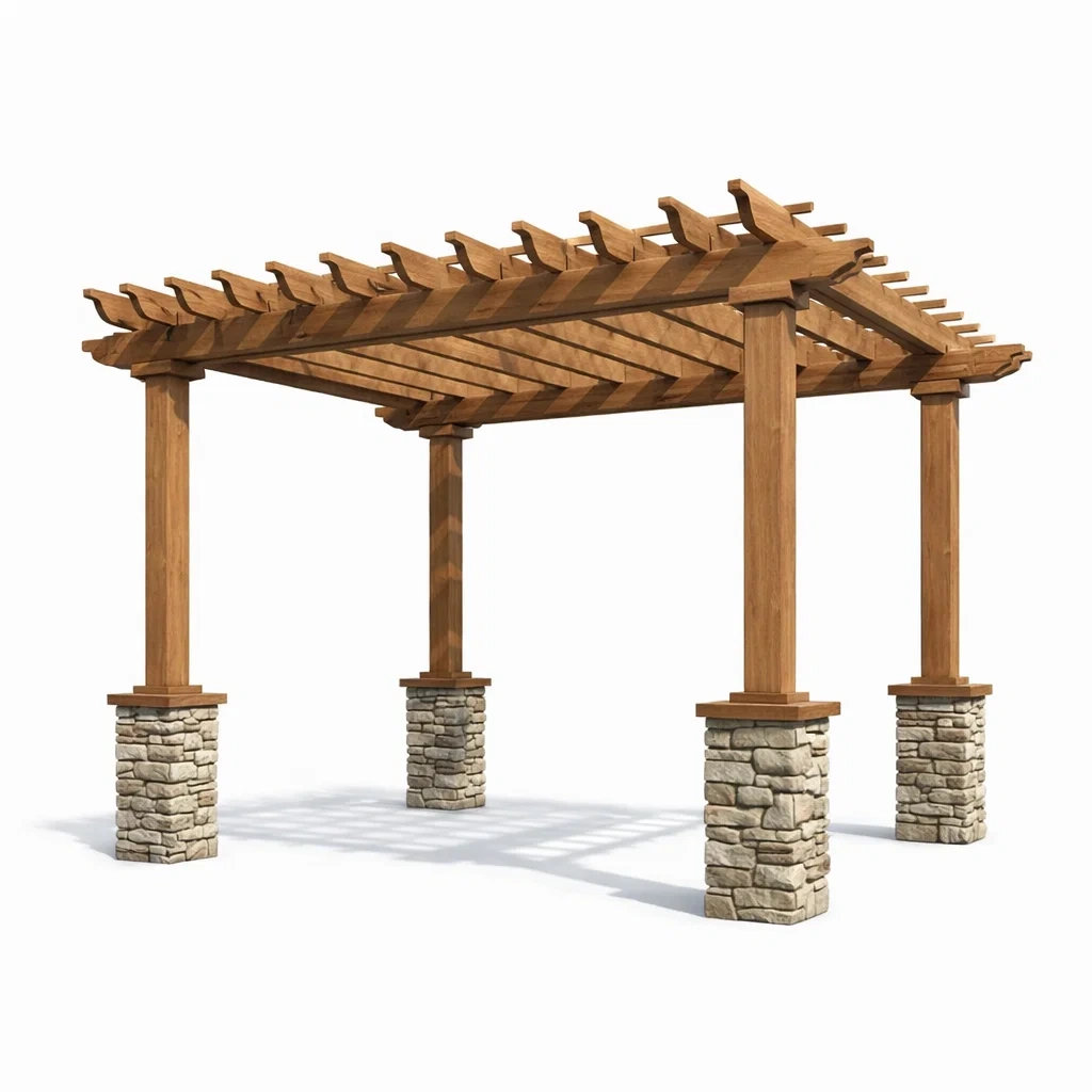 Pergola en bois avec piliers en pierre