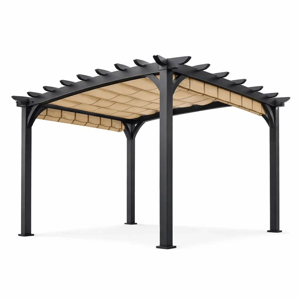 Pergola en aluminium avec toit en treillis noir