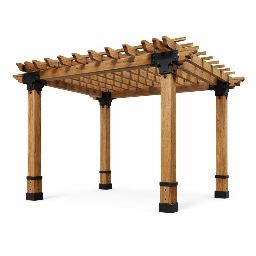 Pergola en bois avec raccords en métal