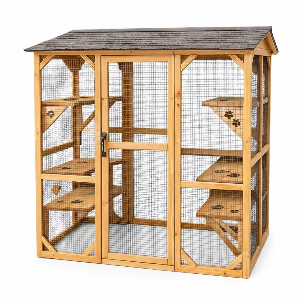 Combinaison d'un abri sécurisé doté de plateformes pour chats