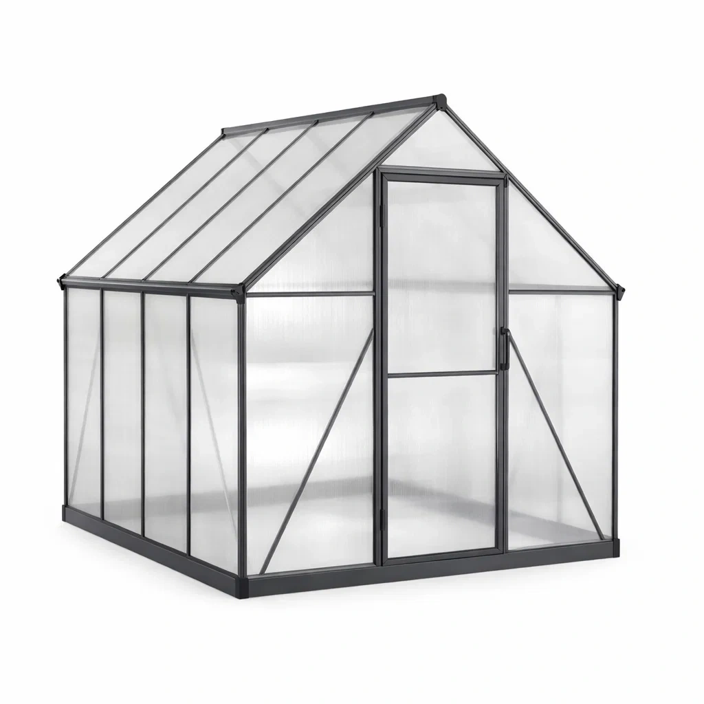Cette serre de jardin est fabriquée avec un châssis en aluminium et des panneaux en polycarbonate de 4 mm d'épaisseur.