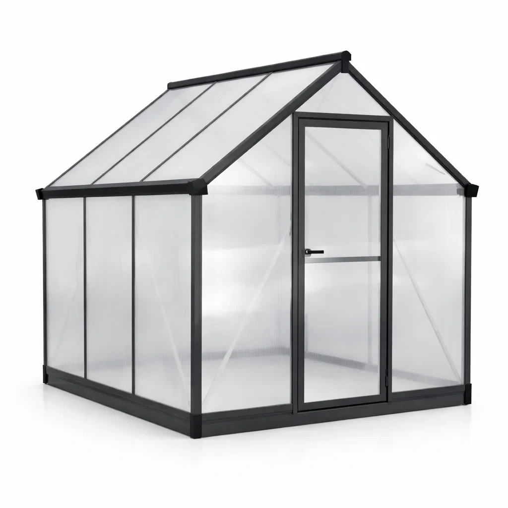 Parties incluses : panneaux en polycarbonate, cadre en aluminium, porte